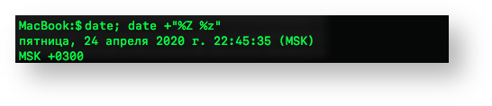 Вывести текущую дату и время, а также часовой пояс в системе можно с помощью команды в терминале: