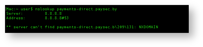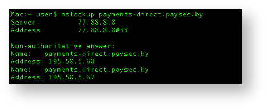Для диагностики службы DNS, проверки DNS записей сервера payments-direct.paysec.by и обнаружения проблем, связанных с разрешением имен в системе DNS используется команда в терминале:
