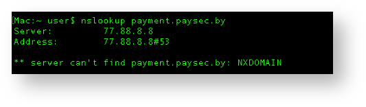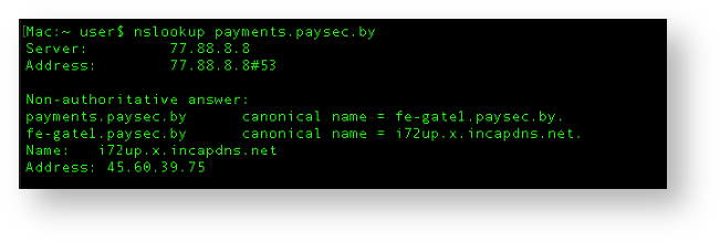 Для диагностики службы DNS, проверки DNS записей сервера payments.paysec.by используется команда в терминале: