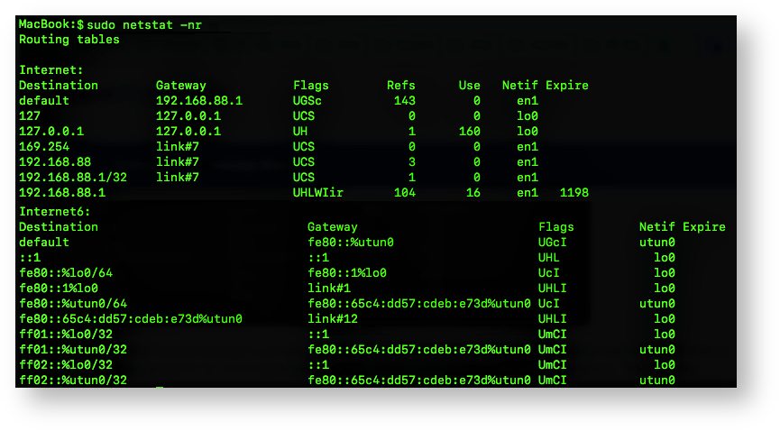 Вывести на экран все содержимое таблицы IP-маршрутизации можно с помощью команды в терминале: