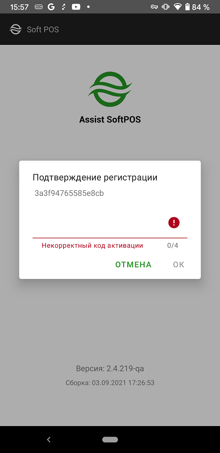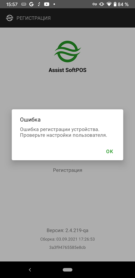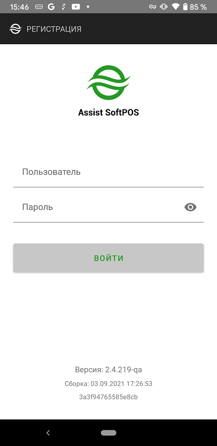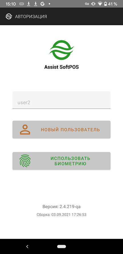Регистрация пользователя Assist SoftPOS